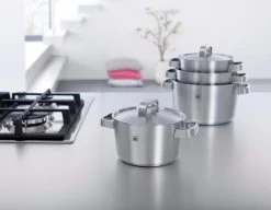De kookpannen zijn geschikt voor alle warmtebronnen, inclusief inductie en gebruik in de oven tot aan 230 graden Celsius.