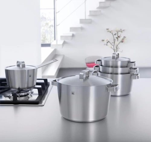 De kookpannen zijn geschikt voor alle warmtebronnen, inclusief inductie en gebruik in de oven tot aan 230 graden Celsius.