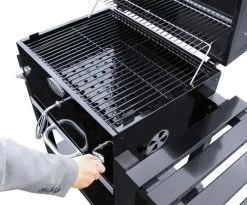 Wil je een houtskoolbarbecue met een optimale temperatuurcontrole? Dan is de Boretti Carbone de geschikte barbecue voor jou. De houtskoolbarbecue heeft namelijk een kolenvlak dat je van boven naar beneden verstelt met de zwenkhendel. Hierdoor heb je de mogelijkheid om de temperatuur aan te passen, zonder hierbij je handen te branden. Je hebt nog meer controle over de temperatuur dankzij de 4 luchtroosters en je leest de temperatuur af van de dekselthermometer. Na gebruik schuif je eenvoudig de asopvanglade onder de barbecue vandaan om deze te legen. Het werkblad is opklapbaar waardoor de barbecue minder ruimte inneemt in de schuur. Met het handvat en de wielen verplaats je de barbecue gemakkelijk naar een andere plek in de tuin.