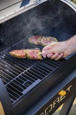 Met de 2 standaard meegeleverde gietijzeren roosters maak je mooie grillstrepen op je steaks.