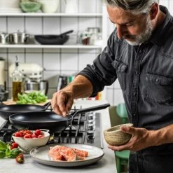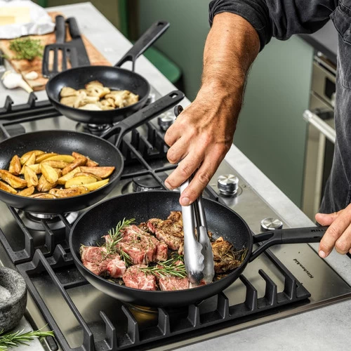 De kunststof greep blijft koel, waardoor je de pan veilig naar de eettafel verplaatst.