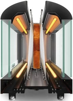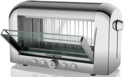 Een kijkje in de keuken. Dat krijg je met de Magimix Le Vision broodrooster. Hiermee zie je je boterham langzaam een smakelijke goudbruine kleur krijgen. Door de dubbele isolatie van de glazen zijpanelen gaat er geen warmte verloren en heb je aan het eind van het roosterprogramma krokant brood. Rooster je een stokbrood of bagel? Kies dan voor eenzijdig roosteren met de stokbroodfunctie. Op het bedieningspaneel van de Magimix Le Vision geef je niet alleen de bereiding aan, maar regel je ook de bruiningsgraad.