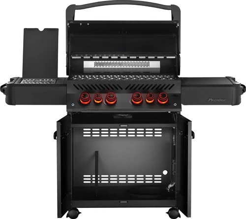 De barbecue heeft een infrarood zijbrander voor het bereiden van sauzen en dichtschroeien van vlees en vis.
