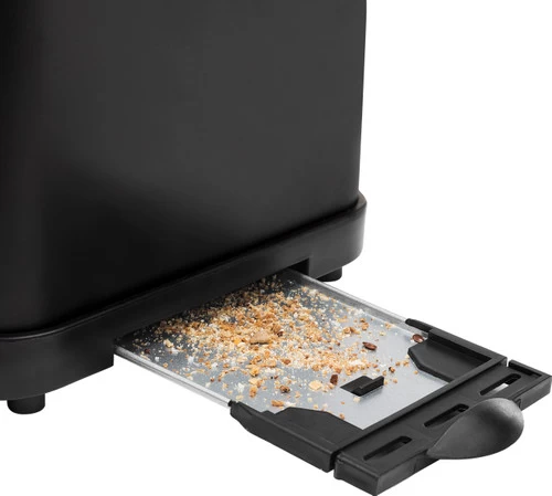 De kruimellade vangt alle kruimels op, zodat je ze na gebruik gemakkelijk weggooit.
