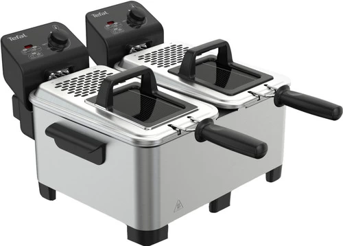 Met de Tefal FR3610 Double Pro zet je een complete frituurmaaltijd op tafel, zonder dat de smaken mengen. Daarnaast gaat het ook nog eens extra snel; want de frietjes en snacks bereid je tegelijkertijd. Beide frituurpannen hebben een inhoud van één kilo. Groot genoeg om patat en snacks voor een groot gezelschap te bereiden. De frituurpannen zijn onafhankelijk te bedienen en stel je in op een temperatuur van maximaal 190°C. Kruimels komen terecht in de koude zone, hierdoor verbranden ze niet en komen er geen nare geurtjes de keuken in én blijft de olie langer vers. De losse onderdelen zijn vaatwasmachinebestendig, naar de afwas heb je dus geen omkijken.