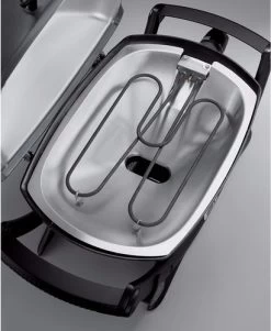 Barbecueën zonder te veel rookontwikkeling? Dat doe je met de Weber Q2400. Deze barbecue werkt namelijk op elektriciteit waardoor er zich tijdens het barbecueën minder rook vormt dan met een houtskoolbarbecue. Bovendien hoef je geen gasflessen aan te schaffen, zoals bij een gasbarbecue, maar steek je het snoer met een lengte van 1,8 meter in het stopcontact en je gaat barbecueën. In vergelijking met de Q1400 heeft de Weber Q2400 een kookoppervlak dat ruim anderhalf keer zo groot is waardoor je barbecuet voor meer personen. Dankzij de aluminium reflector in de deksel bereikt de barbecue hoge temperaturen. De warmtespiraal zorgt ervoor dat je het vlees gelijkmatig gaart.